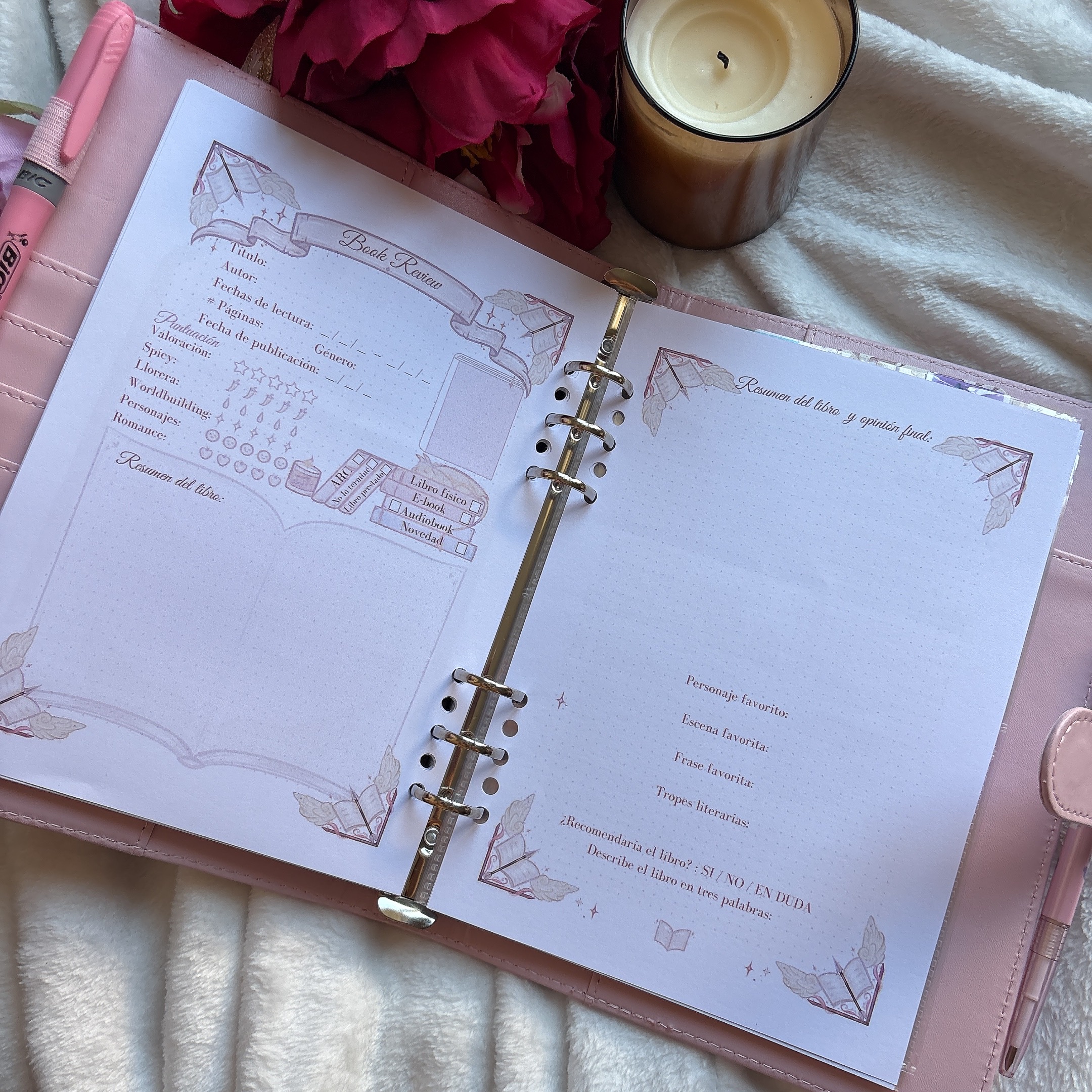 ¡Es una maravilla!😍 Tenía muchas ganas de un Journal y este es perfecto para mi al ser album y poder personalizarse. Agradezco mucho que sea en español y que este cuidado cada detalle. Combinar páginas de reseñas largas y cortas me resulta muy práctico para según qué libro quiera reseñar y las hojas de estadísticas, retos y crucigramas son un complemento ideal. (¡Por no hablar de la hoja de pegatinas con las portadas de los libros, que ha sido una grata sorpresa!)